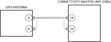• The connectivity master unit (CMU) detects a short to ground in the GPS antenna signal circuit.
