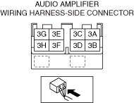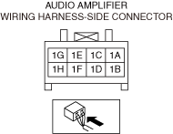 • Measure the voltage at audio amplifier terminal 1A (vehicle wiring harness side).