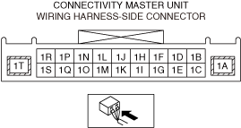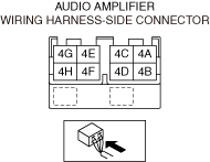 • Measure the voltage at audio amplifier terminal 1A (vehicle wiring harness side).