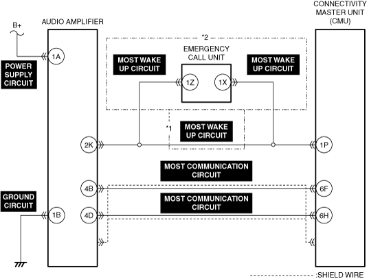 • Short to power supply, short to ground or open circuit in MOST WAKE UP circuit