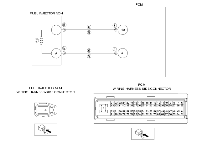 - PCM terminal 40 and fuel injector No.4 terminal B