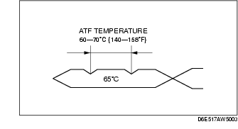 • If a final inspection of the ATF level is performed without driving the vehicle, or the ATF amount is inspected while the ATF temperature is not at about 60-70 °C {140-158 °F}, the ATX could be damaged because the ATF level inspection would be incorrect.