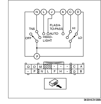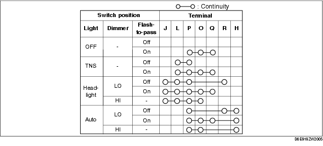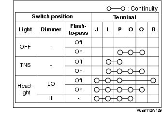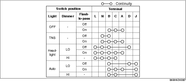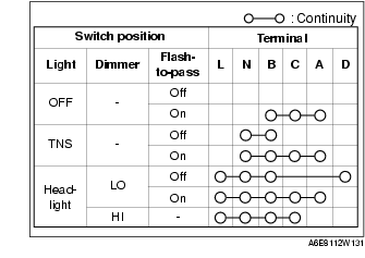 2. Inspect for continuity between the light switch terminals using a tester.